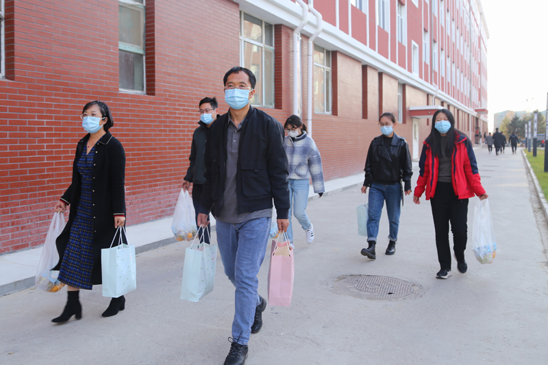 有六名同学在公寓16号楼集中观察。10月28日下午,学院领导齐义军,胡伟华一行前往学生集中驻地,为同学们送上了水果、牛奶、酸奶以及其他日常物品,班级同学为他们撰写的各种祝福信件、卡片。