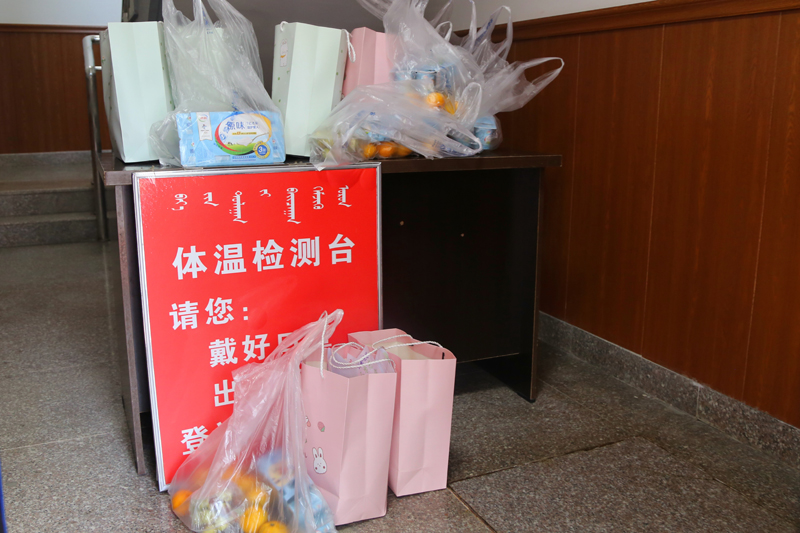 为保障隔离安全,学院领导将慰问物品通过无接触方式递送给各位同学,现场通过视频了解同学们的现状,鼓励她们乐观面对,并表示在生活和学习上如果有任何困难都可以及时向学院反馈,学院一定极尽所能帮助大家。