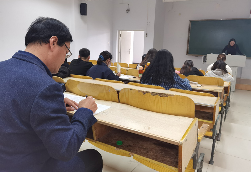 在听课过程中,王来喜副校长认真记录,查阅了学生使用的教材,并与老师的讲授内容进行了对照,观察了同学们的课堂听课状态。在与2019级经济学蒙语授课班学生的交流中,仔细询问采用国家通用语言授课是否听得懂,因《计量经济学》课程内容比较抽象,难度较大,勉励学生要课前预习,课上认真听讲,及时与老师互动,要联系现实中的问题多做练习,这样才能学以致用。在与老师的交流中,王来喜副校长肯定了老师们教学态度严谨认真、备课充分、讲述清晰、知识内容丰富,特别强调了要深入挖掘思政元素,做到自然而然融入每一节的教学内容中,规避课程思政与教学内容“两张皮”的现象。