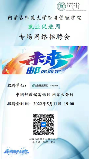 积极开拓就业岗位,全力促进2022届毕业生尽早就业、顺利就业,实现更高质量、更加充分就业 ,5月11日特邀请中国邮政储蓄银行内蒙古分行举办线上专场招聘会。会议由韩丽主持。