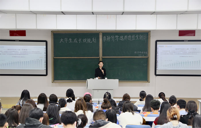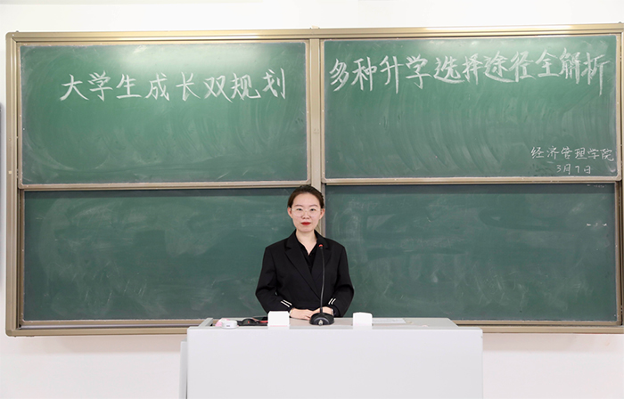特邀新东方教育科技集团有限公司前途出国主管、金牌讲师陈胜老师以“大学生成长双计划多种选择途径全解析”为题,对出国留学项目进行了专题介绍,辅导员宝苏雅拉老师主持讲座。