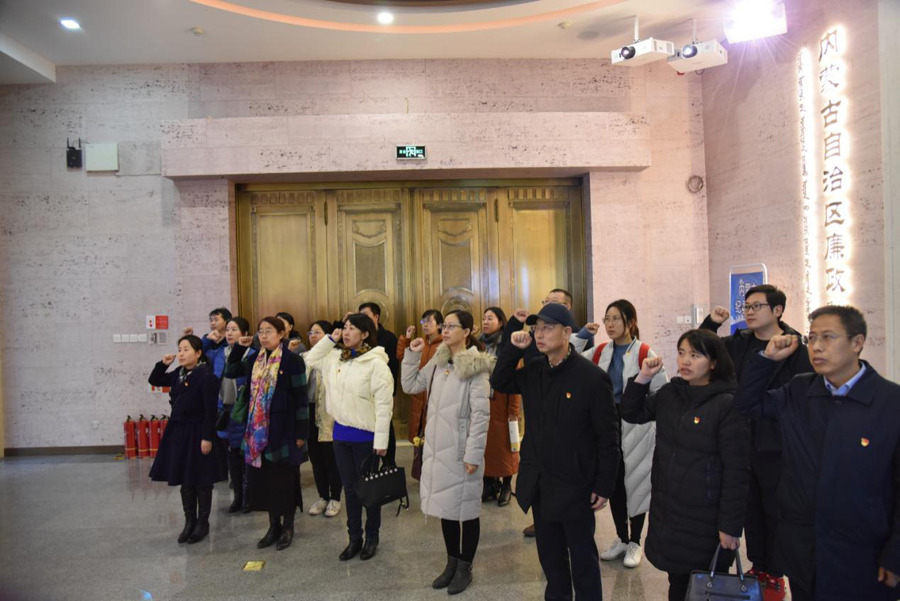 、民族学人类学学院和继续教育学院的老师们在内蒙古自治区廉政教育展厅内举行了重温宣入党誓词仪式。