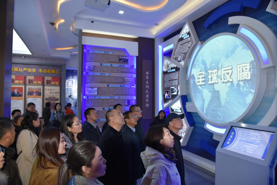 内蒙古自治区廉政教育展厅共分七个部分,在讲解员的带领下,党员干部们边看、边听、边学,分别学习了“史海问廉 以古鉴今”、“惩腐肃贪 世界纵览”、 “从严治党 坚定不移”、“以案明纪警钟长鸣”、“人生悲剧千古悔恨”、“人民公仆勤廉楷模”、“激浊扬清尽责圆梦”等内容。