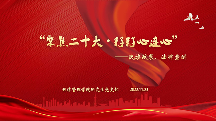 研究生党支部于2022年11月23日开展“聚焦二十大·籽籽心连心”——民族政策、法律宣讲活动。支部全体党员、党员发展对象、入党积极分子参加会议,会议由支部书记乔涵主持。