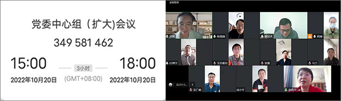 为深入学习习近平在中国共产党第二十次全国代表大会上的报告精神,2022年10月20日下午,院党委理论学习中心组(扩大)专题学习活动在线上召开,学院党委委员和支部书记参加专题学习。