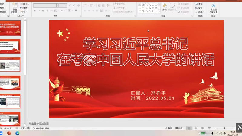为深入学习贯彻习近平总书记在中国人民大学考察时的重要讲话精神,研究生支部于4月30日在线上召开集中学习讨论会。会议由研究生党支部宣传委员王春刚主持,支部全体党员、党员发展对象、入党积极分子参加会议。