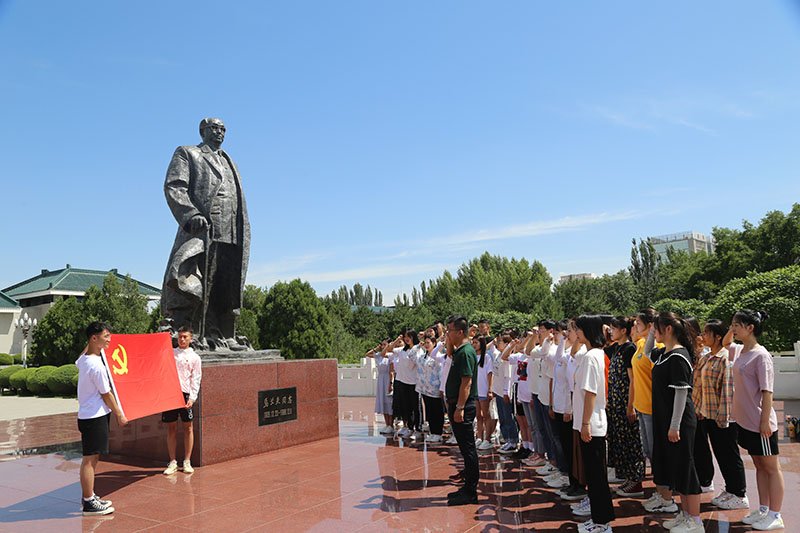 全体党员在乌兰夫同志的铜像前重温了入党誓词。通过本次现场教学,同学们被乌兰夫等老一辈同志的革命精神和革命意志深深震撼,更加坚定了为“建设亮丽内蒙古,共圆伟大中国梦”而贡献自己的青春和力量的初心和使命。