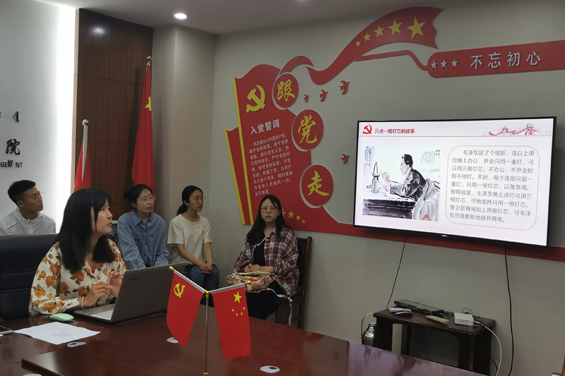 本科生第一党支部五个学习小组分别就《只点一根灯芯的故事》与《井冈山精神》、《半条被子的故事》与《抗震救灾精神》以及《抗疫精神》、《邓稼先》与《两弹一星精神》、《一个军需处长的故事》与《特区精神》、《杨靖宇》与《红岩精神》进行了“微党课”讲述。