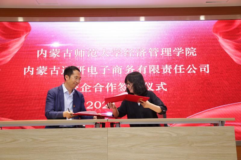 签约仪式上,学院院长齐义军和内蒙古通研电子商务有限责任公司总经理魏丽签署合作协议。双方在专业建设、实习实训、创新创业、人才培养等方面达成长期稳定的院企合作关系。