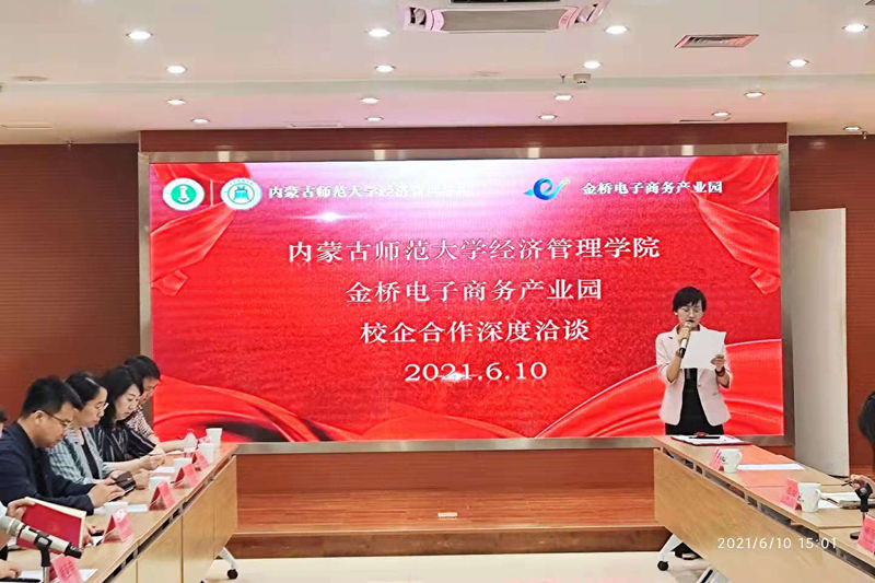 纪欣介绍了金桥电子商务产业园的基本情况。齐义军介绍了学院学科专业设置、教学科研、人才培养等方面的基本情况。