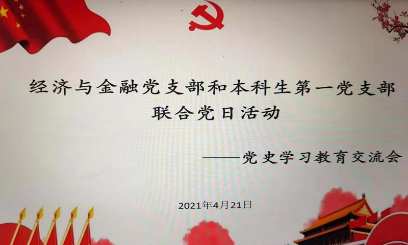 党委关于党史学习教育实施方案的工作要求,进一步深入学习内容,创新党史学习教育模式。4月21日晚经济与金融党支部和本科生第一党支部联合开展了党史学习教育交流会,此次交流会由本科生第一党支部书记马运泽主持,经济与金融党支部书记杨蕴丽、特格希毕力格代表出席。