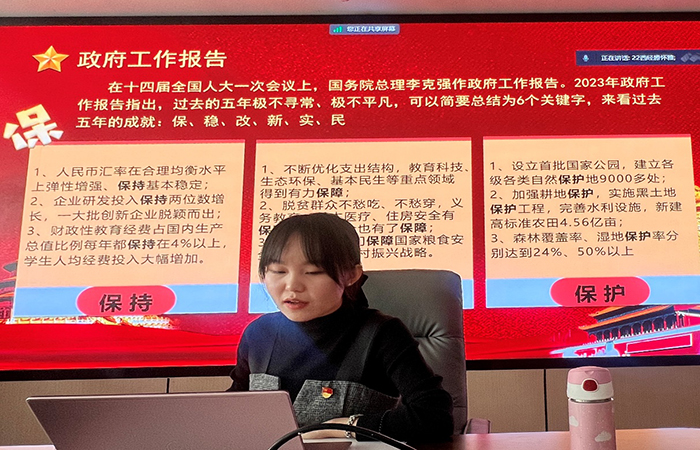 其次,滕怀雅同志领学了习近平总书记在第十四届全国人民代表大会第一次会议上的讲话和2023年政府工作报告的主要内容。