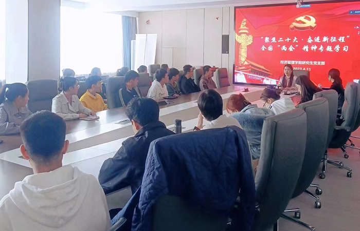 研究生党支部于2023年4月11日召开“聚焦二十大·奋进新征程”——全国两会精神专题学习会议。支部全体党员、入党积极分子参加会议,会议由支部书记乔涵主持。