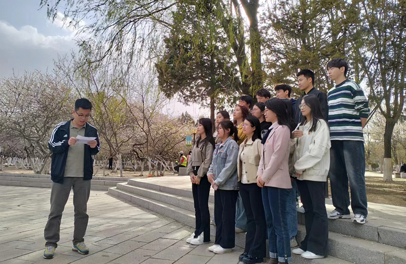 2022级研究生唐振超现场带大家重温了抗日阵亡将士纪念碑的历史。同学们环绕纪念碑,瞻仰镌刻在纪念碑上牺牲官兵的姓名,并高声齐读了由胡适撰文、钱玄同书写的碑文。