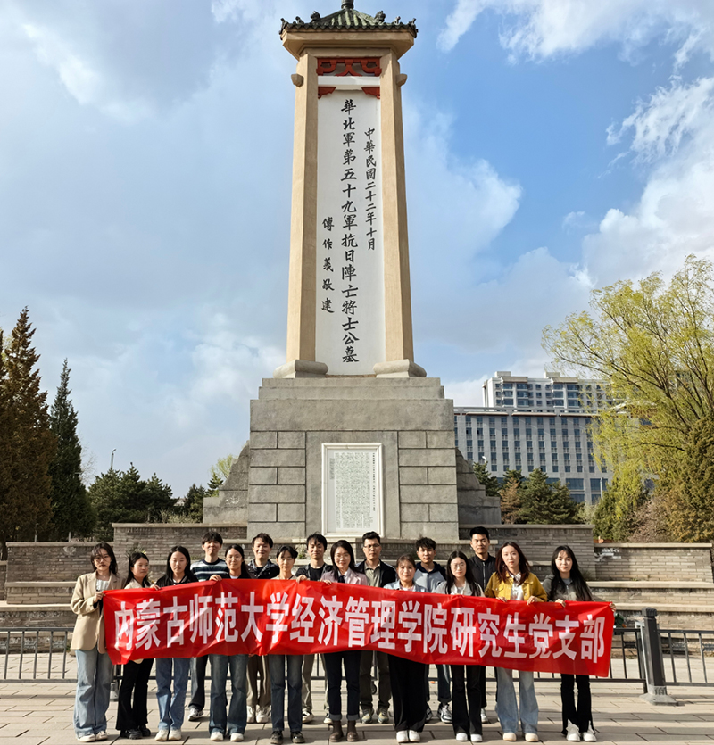 为激发缅怀革命先烈、崇尚民族英雄的爱国情感,引导学生铭记革命历史、增强建设中国特色社会主义的责任感和使命感,研究生党支部于4月10日赴呼和浩特市公主府公园抗日烈士纪念碑,开展“缅怀革命先烈·强国复兴有我”主题党日活动。支部全体党员、党员发展对象、入党积极分子参加活动。
