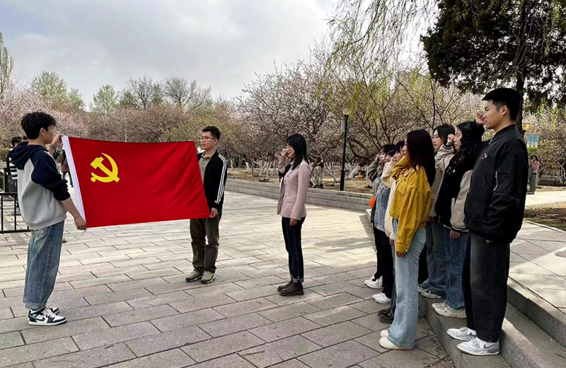 之后,全体党员面向党旗,支部书记乔涵同志作为领誓人,带领党员一起紧握右拳,庄严肃立,重温了入党誓词。