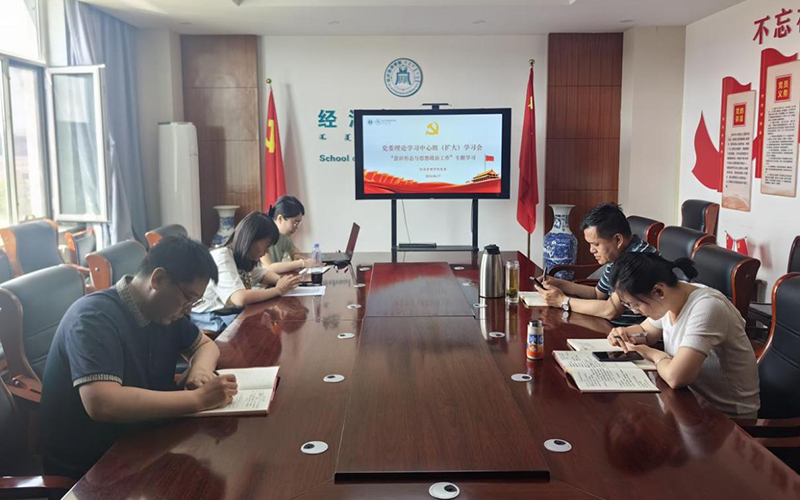 会议学习了习近平总书记关于意识形态工作的相关重要论述和《红旗文稿》文章《认真学习贯彻习近平总书记关于意识形态工作的重要论述》,学习了《人民日报》文章《习近平总书记关于网络安全和信息化工作重要论述综述》和习近平总书记在全国高校思想政治工作会议上的重要讲话。之后,以倾听配乐诵读的形式学习了《习近平谈治国理政》第二卷中的《坚持和巩固党对意识形态工作的领导》和《建设网络良好生态,发挥网络引导舆论、反映民意的作用》两篇文章。之后,大家集体自学了教育部部长怀进鹏于《人民日报》发表的署名文章《不断推动高校思想政治工作高质量发展》。