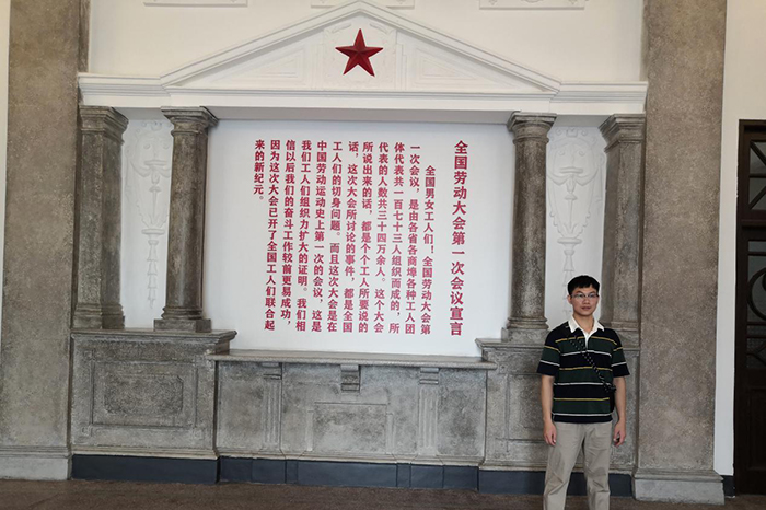 丘土鑫来到广州市第一次全国劳动大会旧址。“一劳大”的胜利召开,是中国工人阶级开始走向联合、走向团结的里程碑,开创了中国工人联合起来的新纪元,确立了中国共产党在全国工人运动中的领导地位。