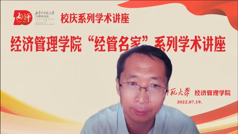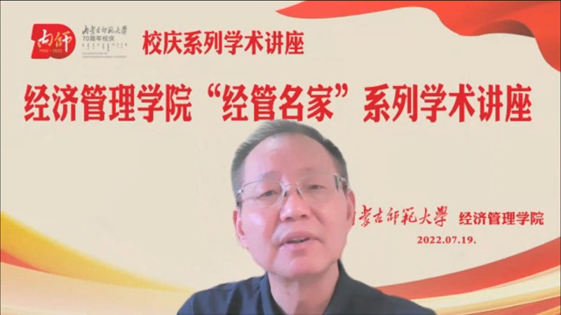 七秩铸辉煌,内师谱华章,为迎接我校70周年校庆,学院举办“经管名家”系列学术讲座,聚焦中国经济,聆听名家精解,拓展师生视野,共庆七十华诞。7月19日下午,中国人民大学经济学院教授、博士生导师、中国人民大学习近平新时代中国特色社会主义思想研究院副院长邱海平教授在线为我校师生主讲“社会主义利用资本问题的理论思考”。讲座由学院院长齐义军教授主持,以线上的方式进行。学院党政领导班子、学院教师、研究生、本科生500多人在线上聆听了讲座。