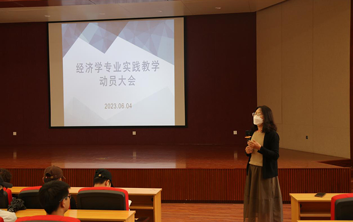 从2023年6月1日开始,经济系根据经济学人才培养方案要求,开始有序安排6月1日——6月18日期间的专业实践教学活动。于2023年6月4日在科技楼报告厅召开了专业实践动员大会。大会上,经济系主任杨蕴丽和副主任胡格吉乐图对专业实践安排的目的与意义进行了深入地剖析,同时详细介绍专业实践活动的内容,也对学生专业实践的学习提出严格要求。姜楠老师代表学术指导教师莅临参会。