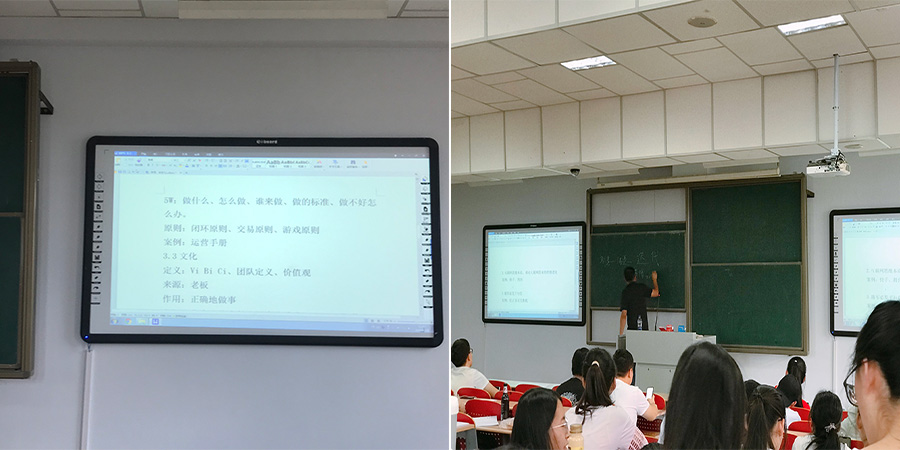 主讲人郝培根总裁用他生动幽默的语言讲述了他丰富的职业经历并且分享了他的管理理念和人生哲理。他认为“管理是一件奇妙的事”。通过管理要做的三件事、经理人必备的知识与技能、总经理必备的知识与技能三个方面结合案例给我们清晰的解答了管理这个抽象的概念;在创业部分,郝培根先生以商业模式、互联网思维、创业与合伙人制等方面为我们将来有创业意向的同学提供了一个有益的思维框架;在读书部分郝总强调做人必须“知行合一”。商业的初心在于修行,通过读书学习伟大先哲的思考方式,提高职场人士必备的思考能力,使自己成为一个不断进步的人。在讲座最后郝培根总裁与同学们互动交流,为广大学生尤其给大一的同学们提供了一个答疑解惑,吸取经验的机会。郝培根先生的个人魅力深深的折服了在场的每位同学,整个讲座在同学们热烈的掌声中结束。