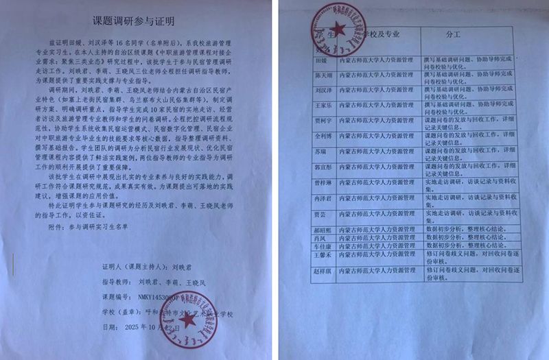 2025年10月13日,系主任贾曼莉带队人力资源专业、副系主任陈雅娟带队会计学专业,分别奔赴呼和浩特市文化艺术职业学校和呼和浩特市商贸旅游职业学校,为管理系教育实习拉开了帷幕。人力资源专业负责人黄河老师、李志华老师、李寅龙老师和王晓英老师也热情地加入到了教育实习工作的保驾护航中。学生感受到:“当我们第一次站在教室讲台上,望着台下学生们清澈的眼睛,才真正懂了’教育’ 二字的重量。”这段为期两周的实习,是同学们从“学生”到“教师”身份蜕变的起点,每一张照片里的画面,都是孩子们成长的注脚。