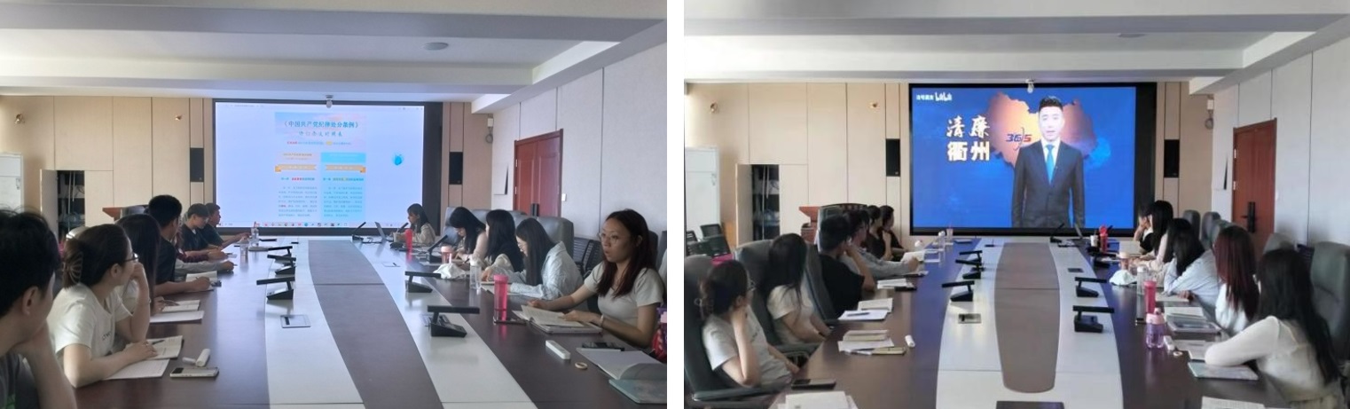 会议学习了《中国共产党纪律处分条例》原文和《中国共产党纪律处分条例》修订条文对照表,逐字逐句学习了新修订《条例》的总则和分则部分。之后,大家共同观看了党风廉政警示教育片《放纵的代价》。