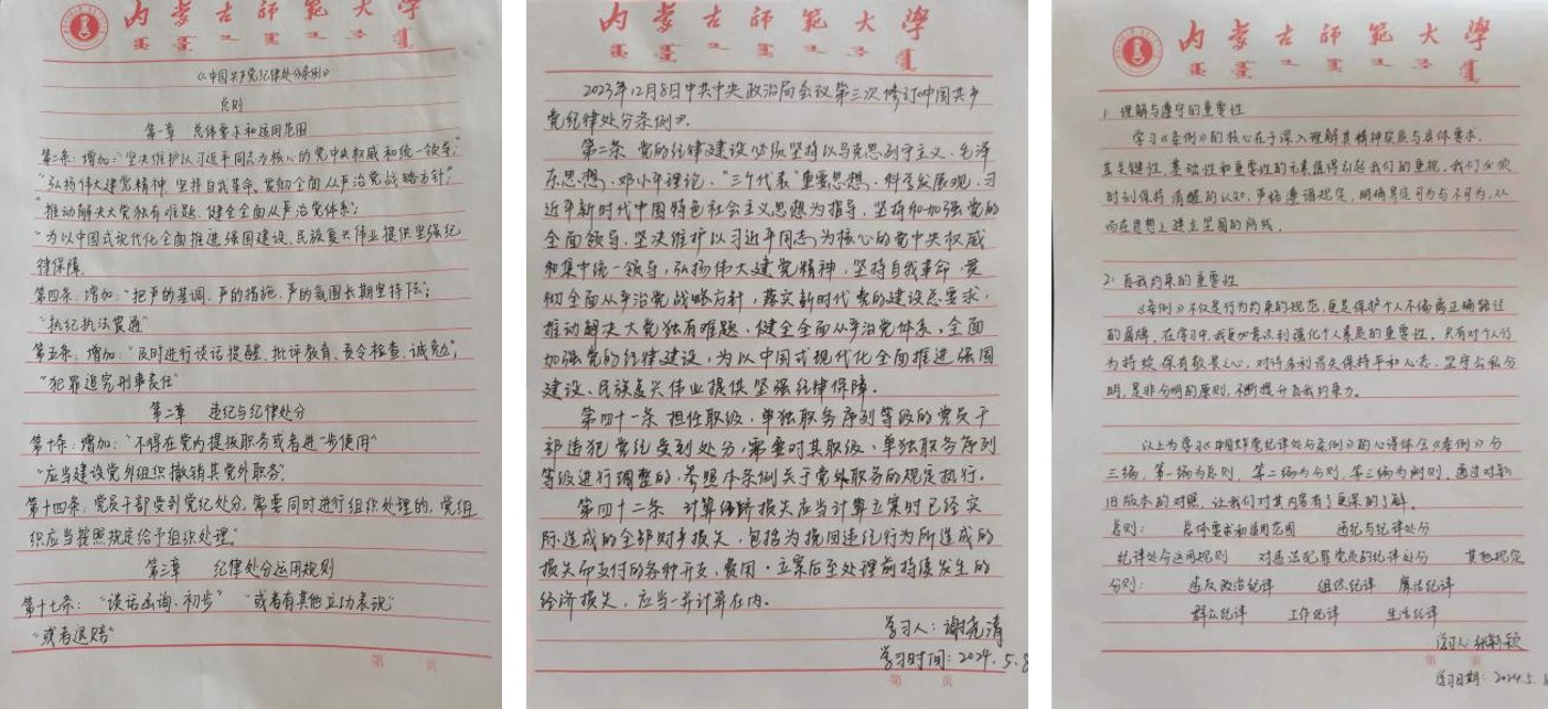 研究生党支部在盛乐校区学院楼503会议室集中学习《中国共产党纪律处分条例》。会议由党支部书记乔涵主持,支部全体党员参加会议。